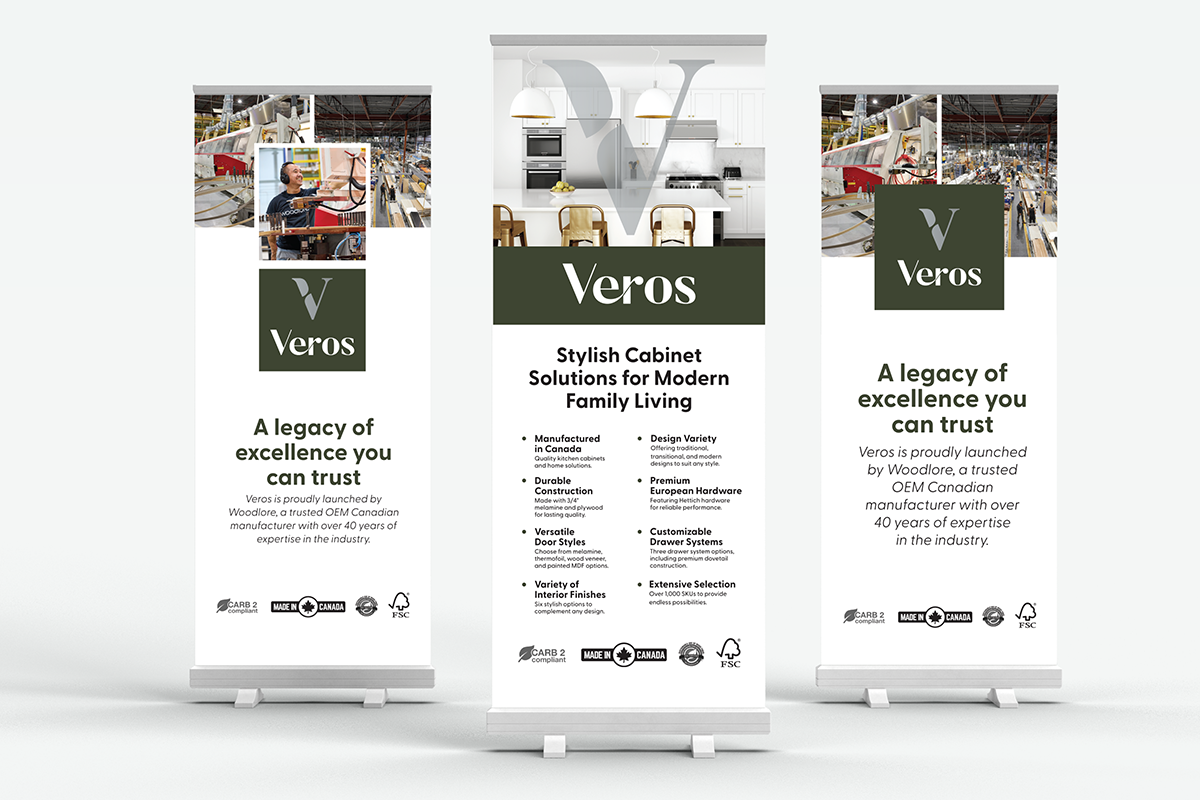 Veros, a new Canadian cabinetry brand by Woodlore, was preparing for its official market launch. The company needed a cohesive suite of visual materials to introduce the brand to dealers and consumers.